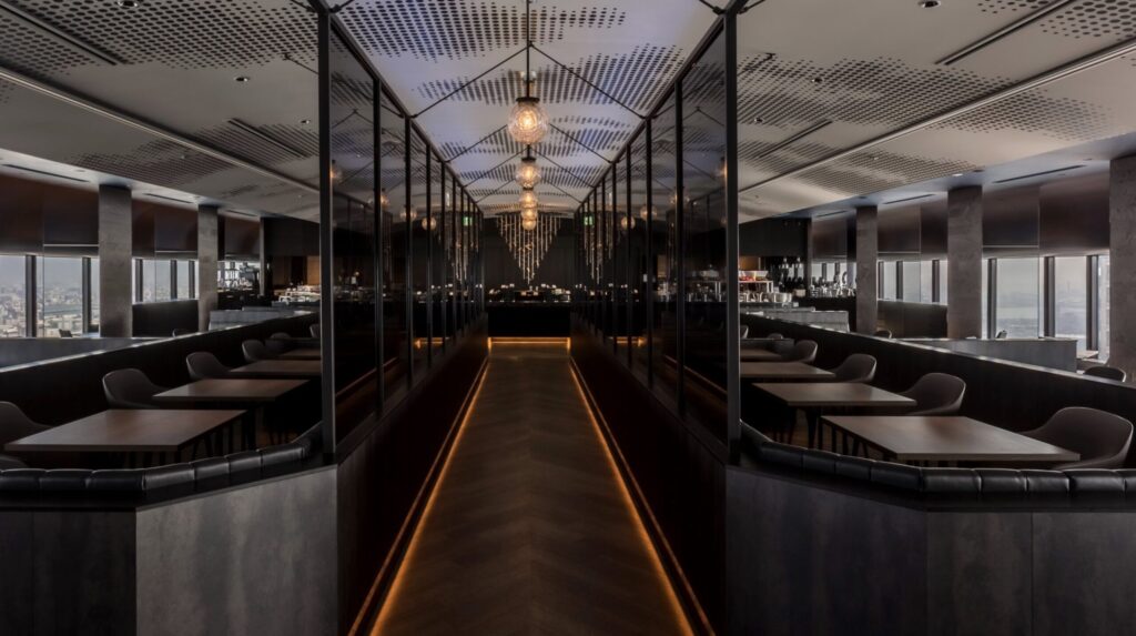 地上約200mから大阪市街や大阪湾を一望でき、開放的な空間で食事が楽しめます!