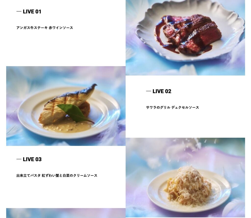 ライブキッチンで出来たてで提供される料理はパスタ・ピザから魚料理まで多彩で、家族連れにもカップルにも人気です。